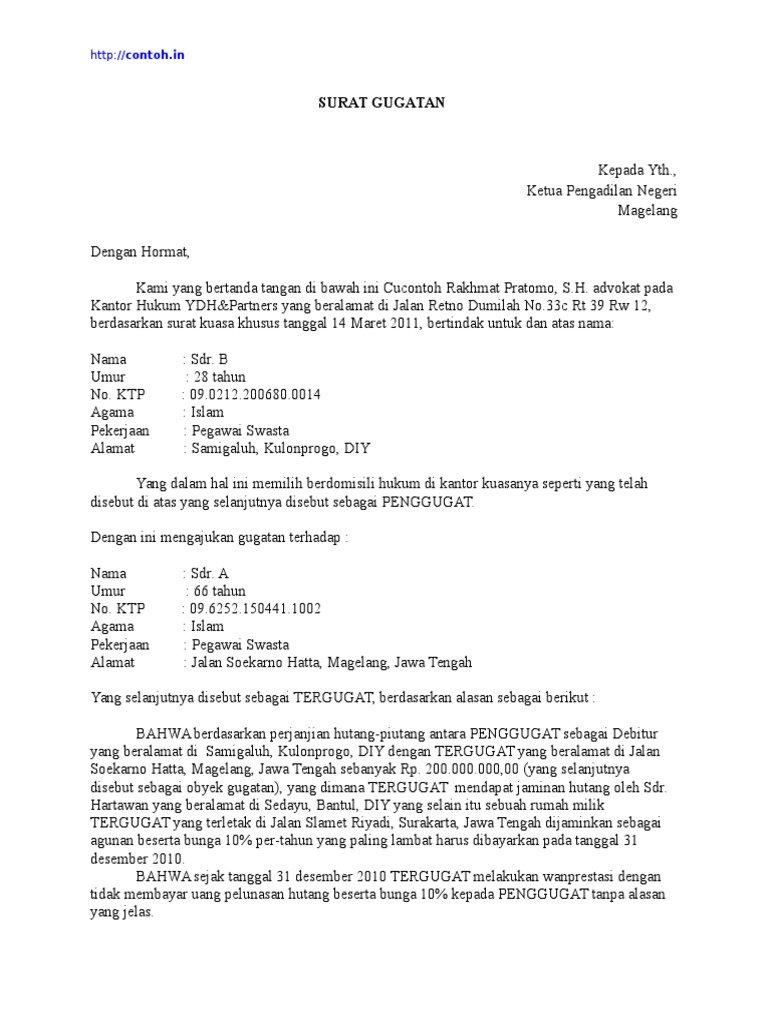 Doc Contoh Surat Gugatan Wanprestasi Dalam Hukum Acara Perdata Alif Putra Academia Edu